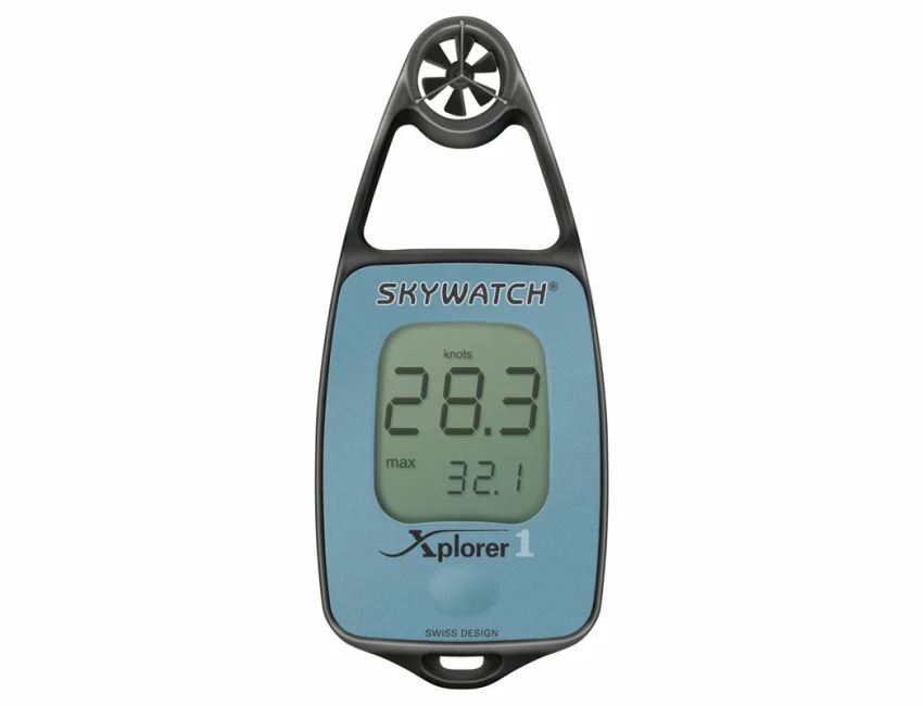 - L’Anemomètre Skywatch Xplorer est un outil de précision conçu pour mesurer la vitesse du vent, essentiel pour les sessions de kitesurf et sports nautiques en toute sécurité.