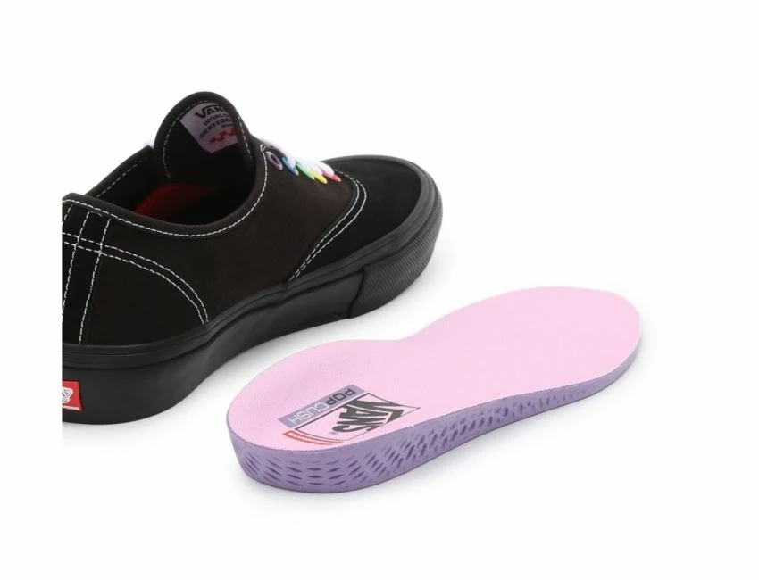 • Les chaussures Vans Skate Authentic Pride Black Multi allient style et fonctionnalité pour les amatrices de skateboard et de mode urbaine.