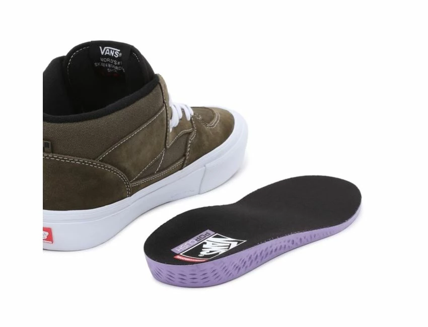 Les chaussures Vans Skate Half Cab Dark Olive sont conçues pour offrir un maximum de confort et de durabilité, idéales pour les amateurs de skateboard.