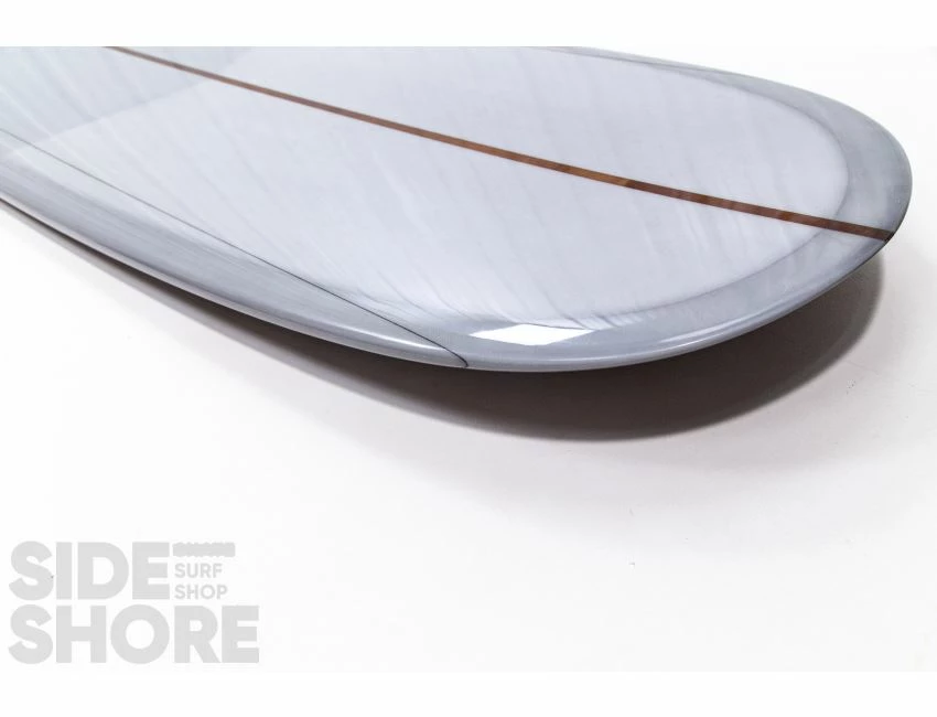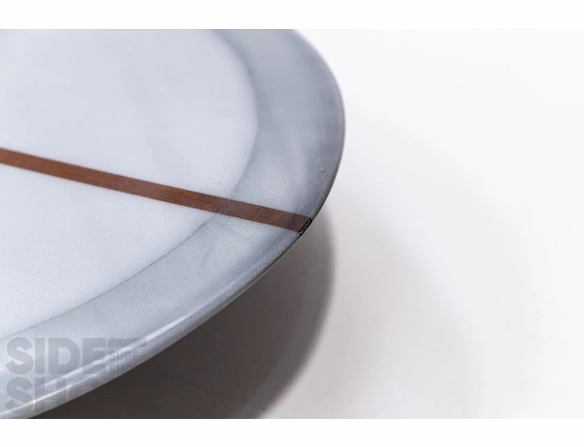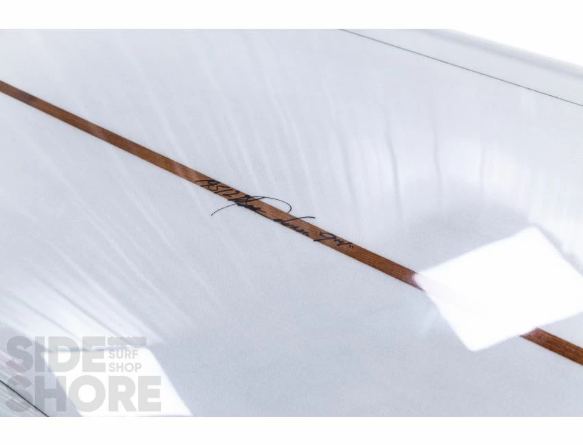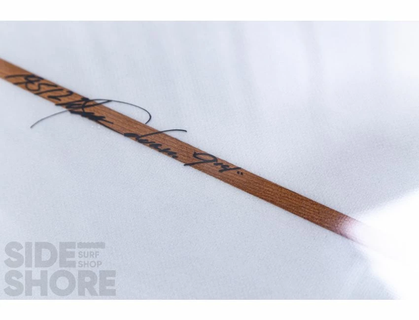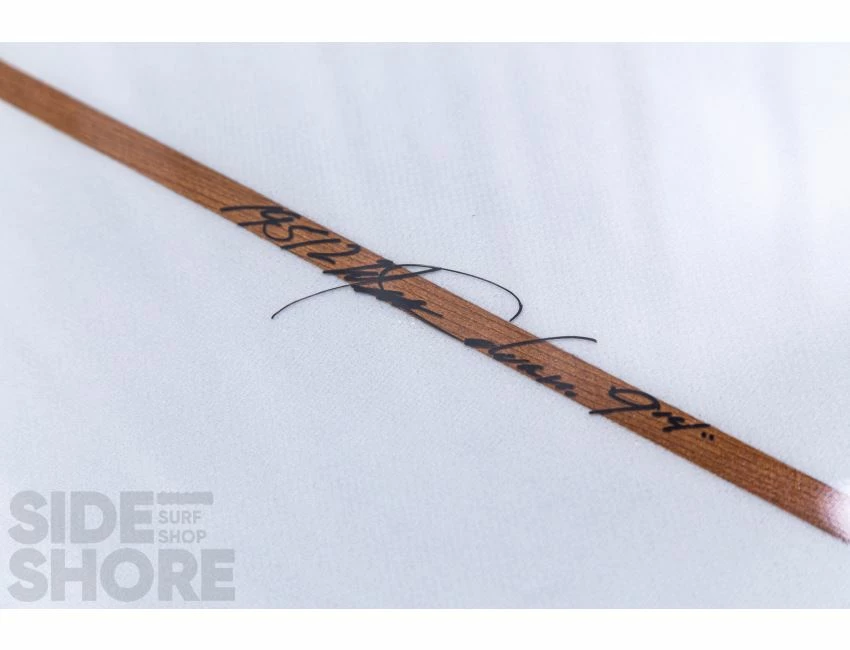 Il a fallu plusieurs année pour affiner chaque détails et éléments de ce shape afin que l’ensemble soit cohérent. La planche possède un Outline assez parallèle, et un rocker général assez plat. Les rails sont pincés pour s’engager pleinement dans la vague.