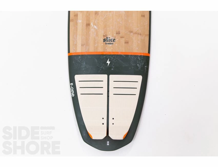 La SLICE BAMBOO a une construction solide, légère et fiable. La board présente deux couches de bambou sur le pont au niveau des pieds pour la résistance et la durabilité. Elle est livrée avec un pad arrière pour des sensations de surf classique.