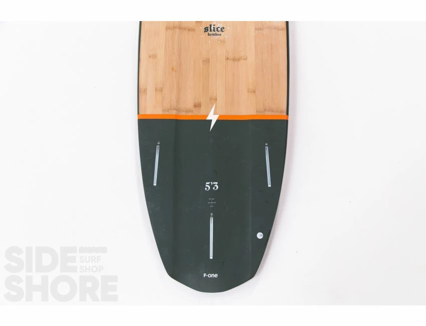 Équipée d’inserts de foot straps, de trois boitiers Future, la SLICE BAMBOO est vendue avec un jeu d’aileron. Un front pad optionnel peut être ajouté si désiré.