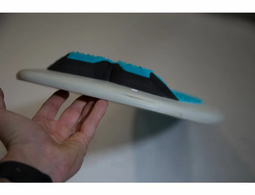 Très polyvalente, lorsqu’on arrive sur le spot on peut vraiment choisir d’y aller en foil ou en surf. Ses rails Us Box permettent d’adapter une grande partie des foils du marché ce qui est plutôt pratique !