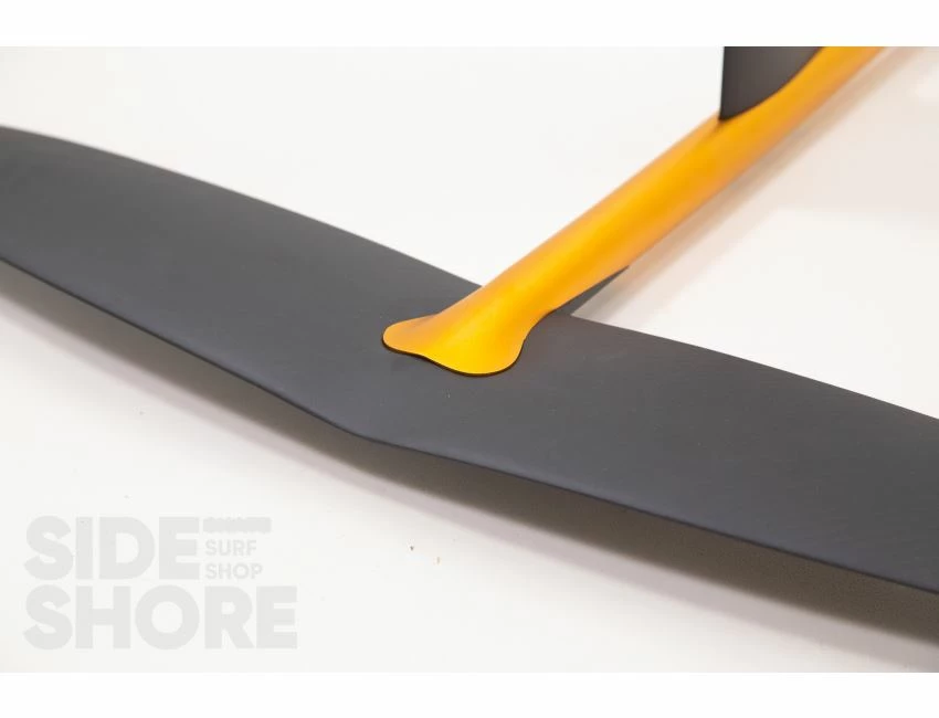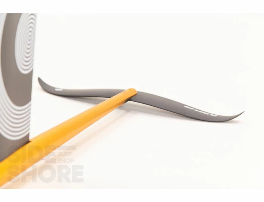 Une construction en carbone pré imprégné avec une âme au centre pour gagner en poids. Le shape est travaillé sur chaque tailles pour offrir du contrôle et de la stabilité au décollage mais aussi en navigation. L’angle du bord d’attaque de celle ci est arrondi et forme une courbure elliptique, qui génère de la portance mais aussi une aide pour bouler vos virages.