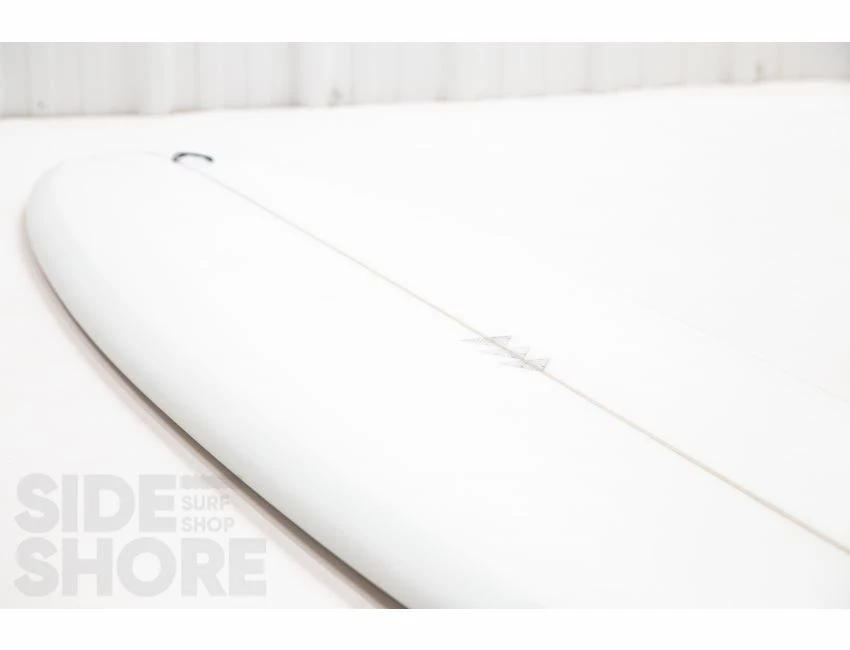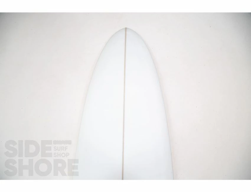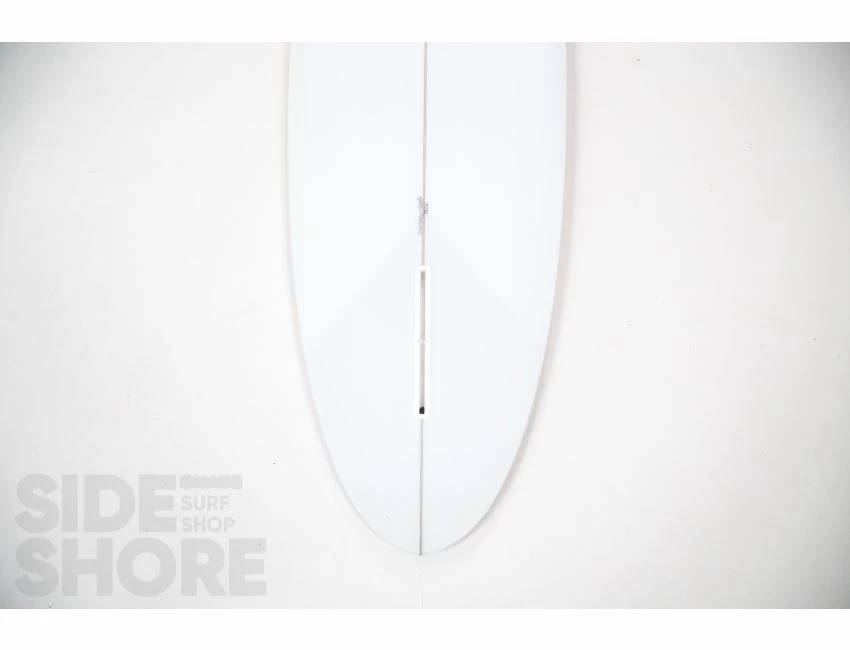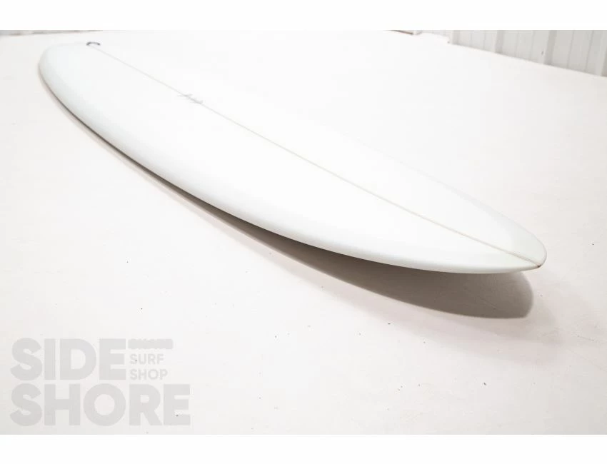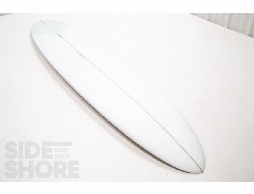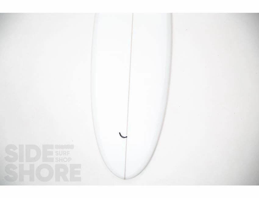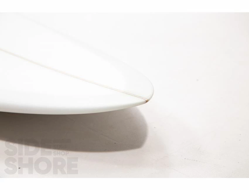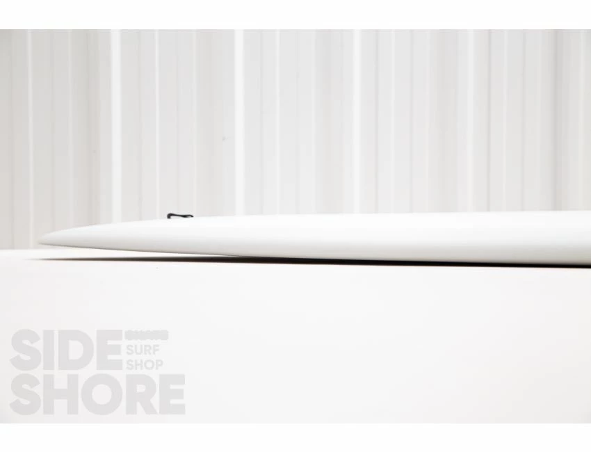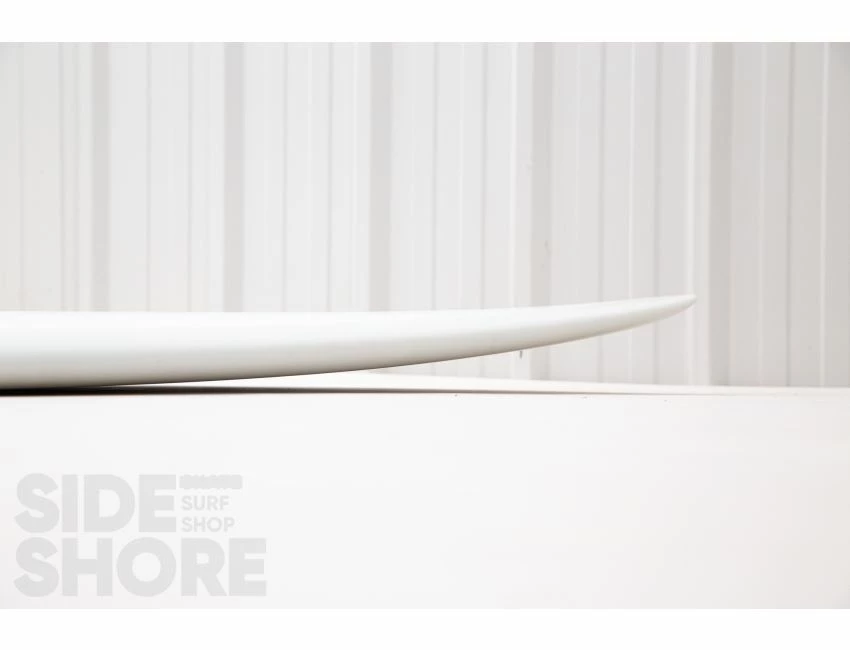 « J’ai conçu cette planche pour être surfée à l’origine sur les front side point breaks, mais j’ai découvert qu’elle était également une planche extrêmement polyvalente sur les beach breaks. Le rocker sur la carène commence par une entrée assez douce dans le nez qui se fond dans un simple concave puis se jette dans un double concave en V. »