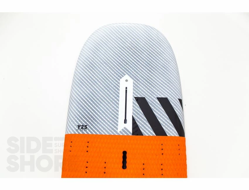 Avec un volume réparti d’une main de maître, il suffit seulement d’une voile de 6.0 m² pour sortir dans 8 noeuds de vent en foil. La planche décolle assez vite et ne freine pas trop lors des touchettes. Malgré son apparence elle est donc vraiment fun dans le vent léger !