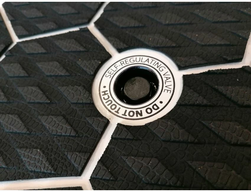 Une large bande de fibre de verre de 200g entoure les rails pour une solidité accrue contre les impacts de paggaie et les écrasements.