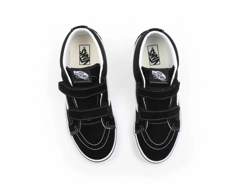 • Les Vans Youth Sk8-Mid Reissue en Noir et Blanc Véritable sont des chaussures intemporelles pour enfants, alliant style et durabilité.
